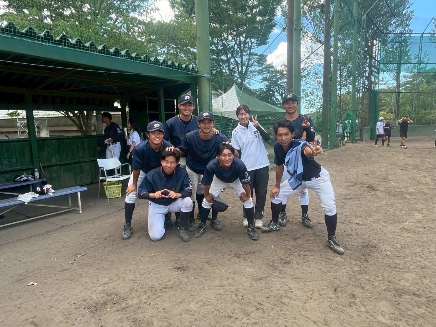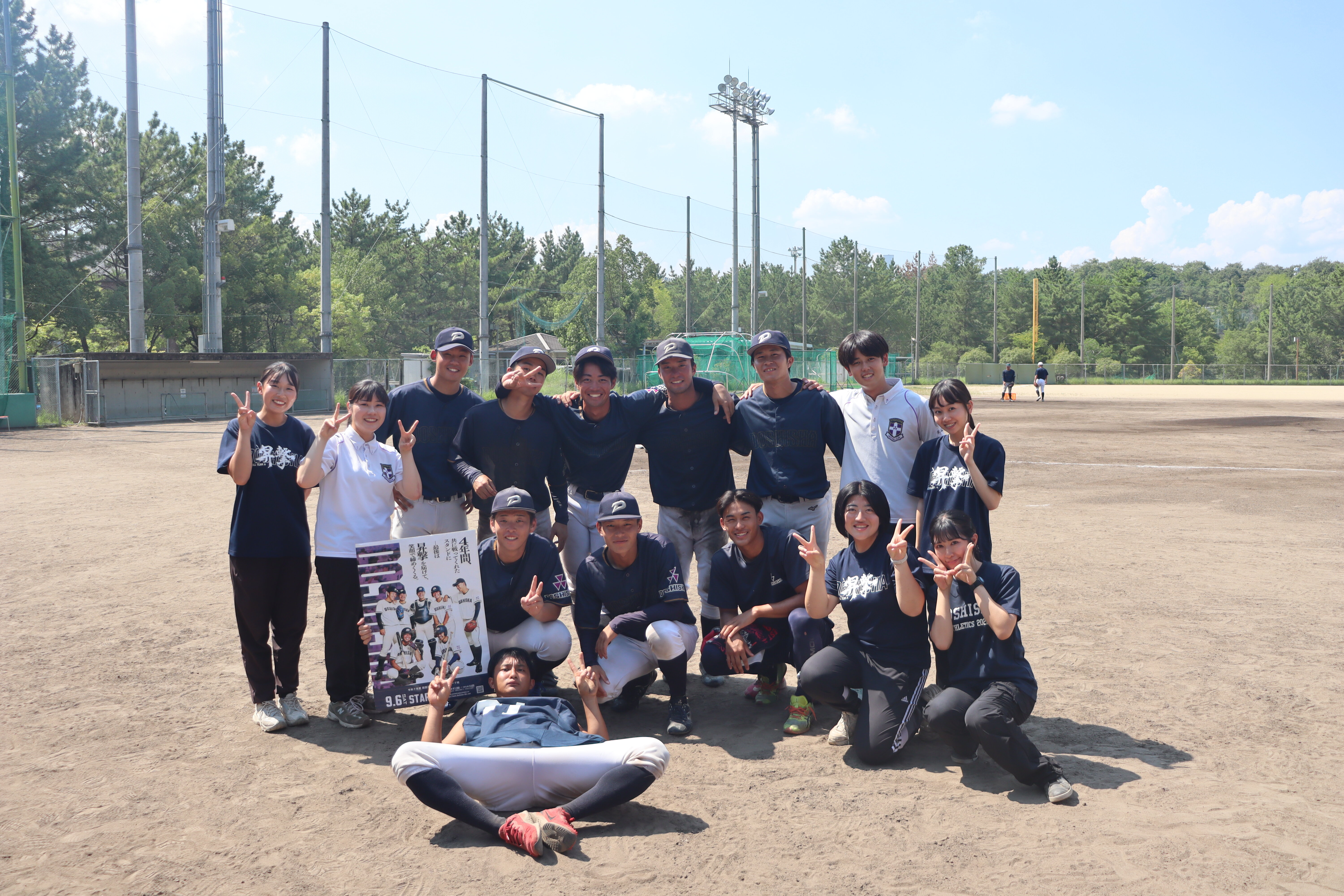 九回表の同志者の攻撃は、二死から齊藤が四球を選択し、二死1塁とする。二死1塁から影山の左二塁打により二死2・3塁とチャンスを広げます。二死2・3塁から本日好調の知念が左適時二塁打を放ち2点を追加します。二死2塁からさらに辻井が今季初安打の左適時二塁打を放ち、さらに1点を追加し、リードを広げます!