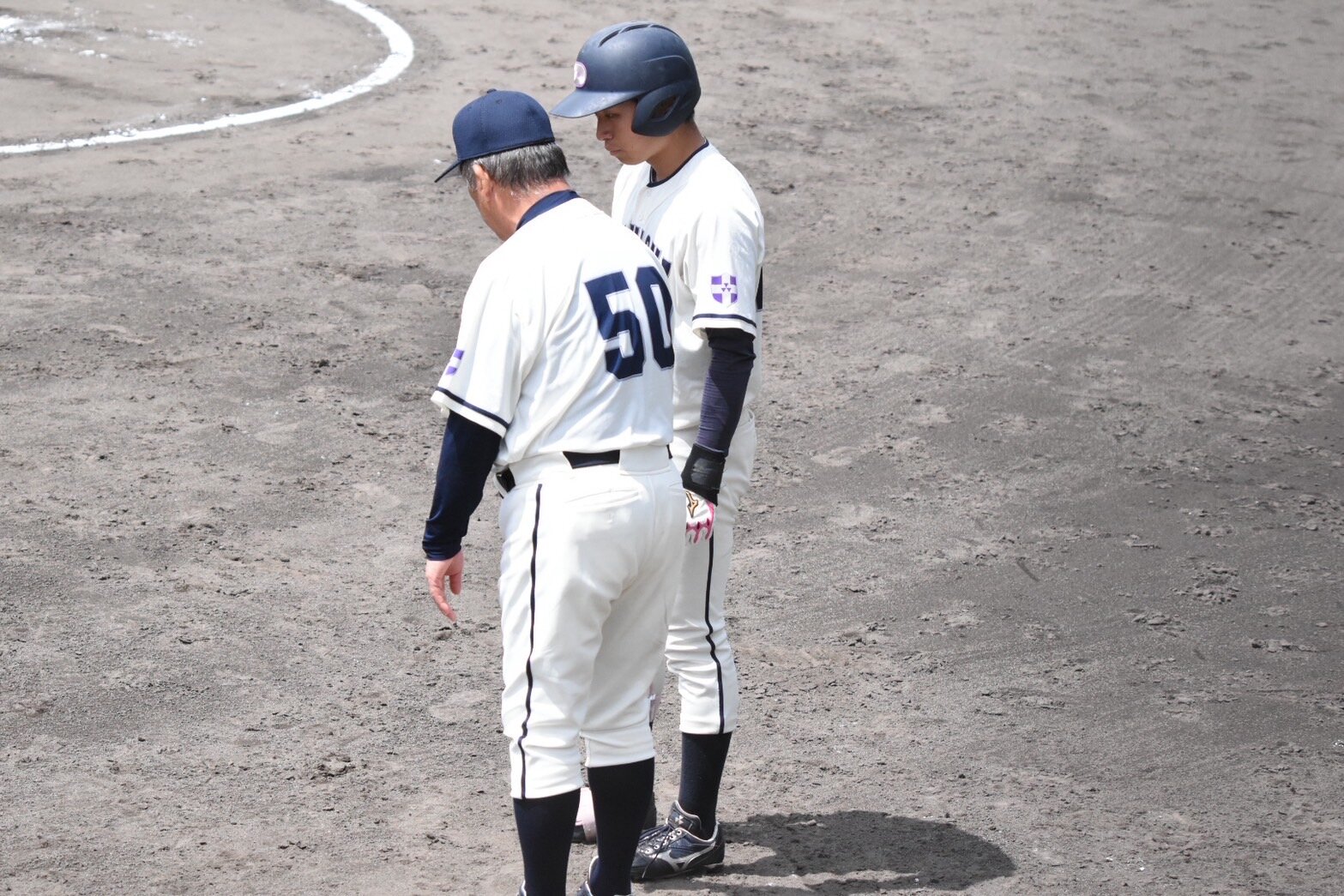 七回表、先頭打者に右安打により出塁すると、後続が送りバントを決め、一死2塁のピンチとなります。その後、中飛、申告敬遠があり二死1・2塁とピンチを広げます。続く打者に中適時打を放たれ一点の追加を許してしまいます。ここで橋本(裕)に代わり、内山(1・仙台育英)がマウンドに上がります。見事に打者を抑えて、この回を終えます。